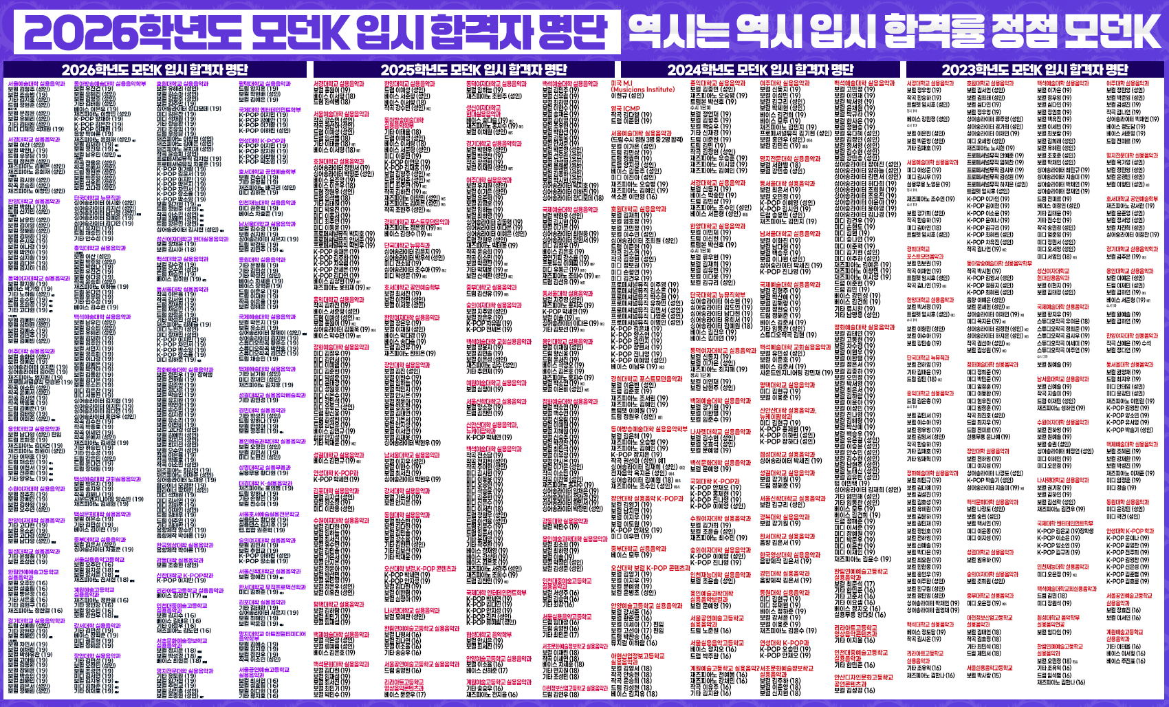 모던케이 실용음악학원 2027학년도 입시대비 주요 실용음악대학 입시 합격생 특강 2026학년도 주요대학 입시 합격생들의 입시 경험담과 입시곡 연주 등 모던K 입시생들..