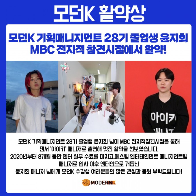 모던K 엔터과정 28기 윤지희 댄서 아이키 매니저로 전참시 출연!