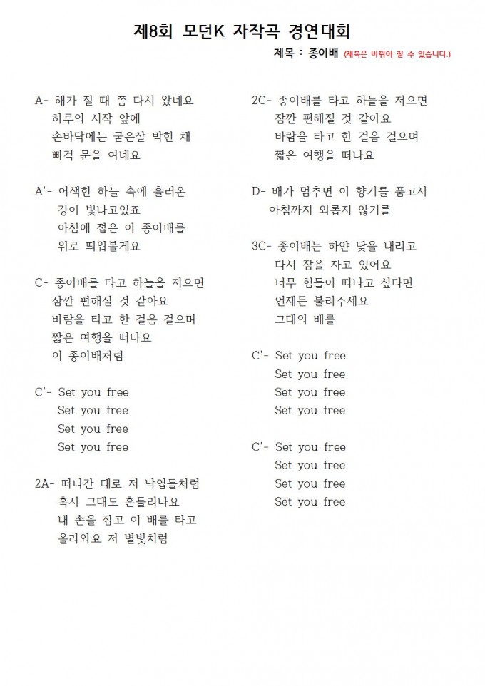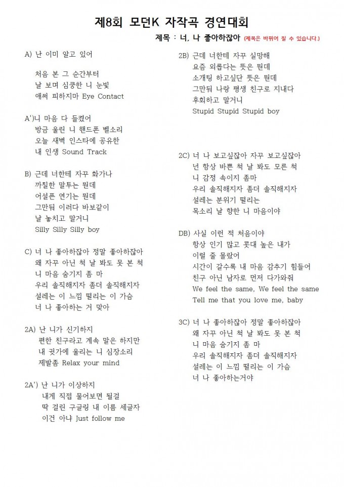4. 예선에서 선택한 가사는 최종 결선까지 적용(수정 불가)