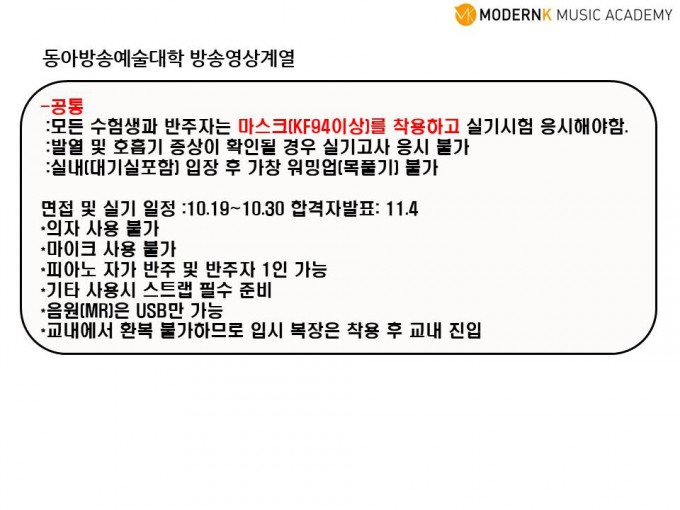 2021학년도 국내 K-POP, 실용댄스 수시 변동 및 특이사항 (2020년 10월 7일 Ver.)
