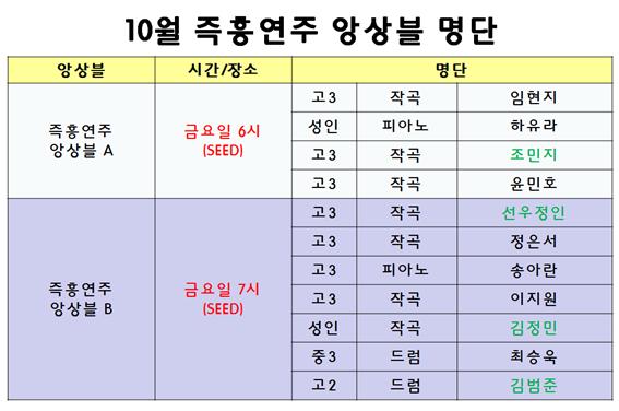 녹색으로 표시되어 있는 학생들은 변동이 있는 학생들입니다.
