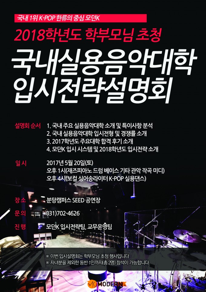 2018학년도 학부모님 초청 국내실용음악대학 입시전략 설명회