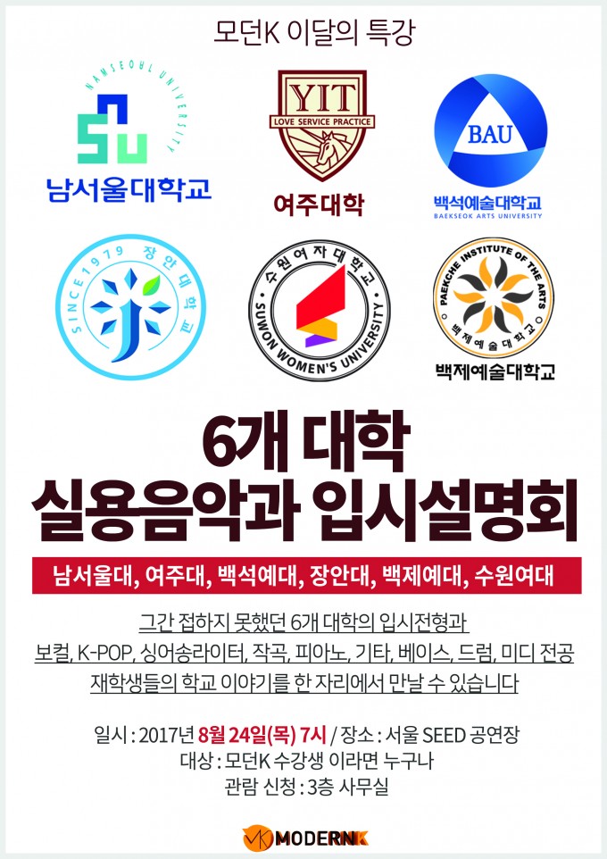보컬 K-POP 작곡 피아노 기타 베이스 드럼 미디 전공 재학생들의