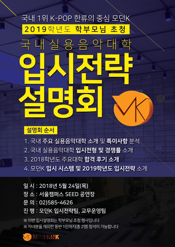 2019학년도 학부모님 초청 국내실용음악대학 입시전략설명회