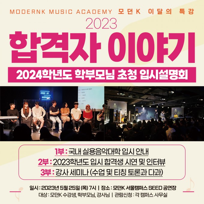 장소 : 25일 (목) (서울캠퍼스) / 29일 (월) (수원캠퍼스) SEED 공연장