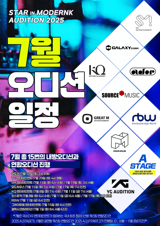 SM, 어도어, 쏘스뮤직, YG 등 7월 한달간 총 15번의 내방오디션과 연합오디션 진행!