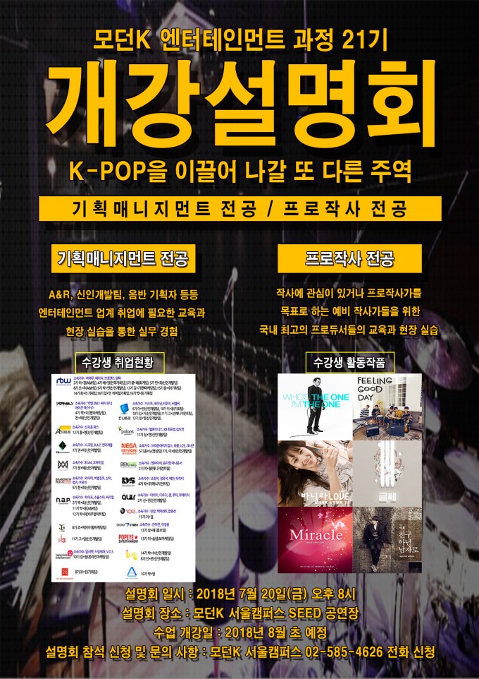 7월 20일(금) 오후 8시 모던K 서울캠퍼스 SEED 공연장에서 진행될 예정입니다.