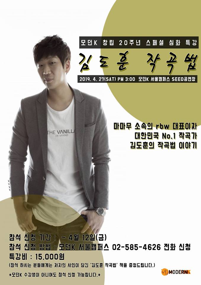 rbw 대표이자 대한민국 No.1 김도훈 작곡가님의 특강이 진행될 예정입니다.^^